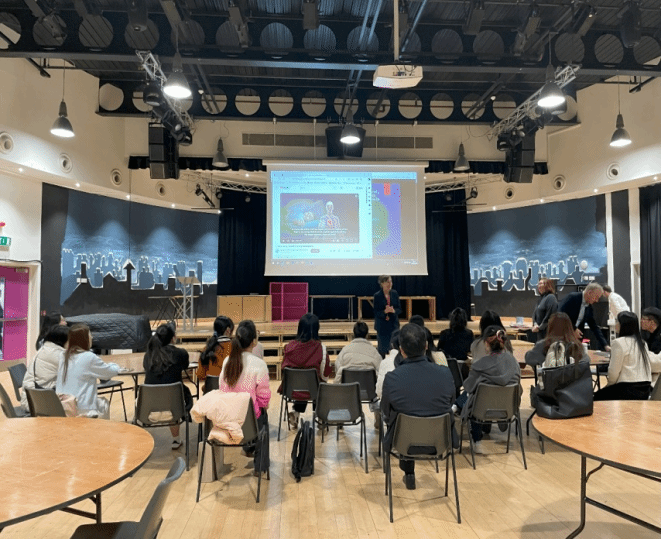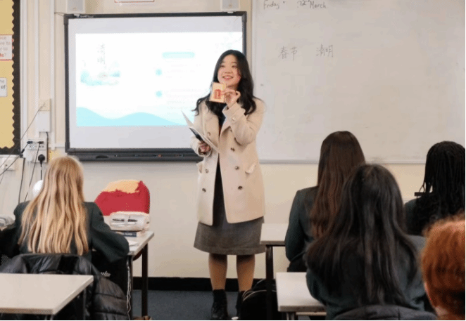 师生参观了英国多所学校,与当地教师进行了深入的交流。同学们走进Passmores Academy、Chobham和Southend High School for Girls三所学校,进行浸润式观摩学习。同学们在学校学生的带领下参观校园并观摩课堂,体验了戏剧、音乐、宗教、体育、计算机等课程,感受校园的文化氛围与教学生态。学校教师开展了微型讲座与圆桌会议,向同学们详细介绍了学校在教学方面的特色以及教育管理方面的机制,并和同学们一起探讨中英教育的异同及各自的优势。同学们深刻地感受到了英国教育体系的不同。英国注重培养学生的批判性思维和创新精神,鼓励学生积极探索、勇于实践的教育理念,让同学们深受启发,也使同学们对我国的教育改革有了更深刻的认识。同学们还走上讲台为当地学校学生授课,介绍中华优秀传统文化。同学们英语水平出色,课堂组织清晰,内容丰富多彩,思想深刻独到,获得了学校师生的一致好评。