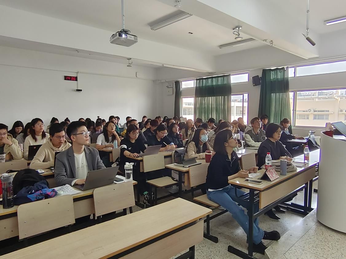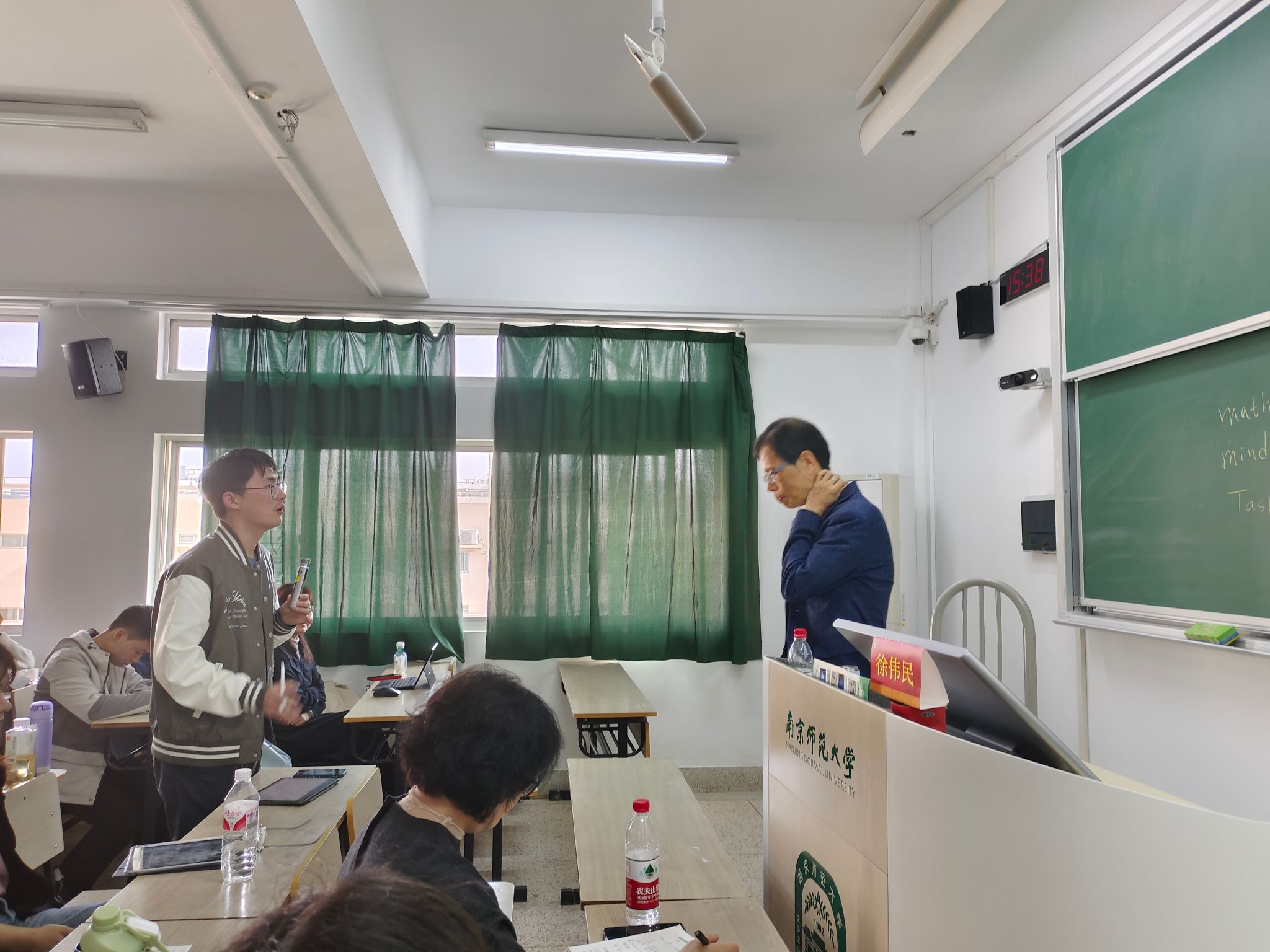 报告接近尾声时,同学们踊跃发言,与徐教授就如何设计一个好的研究、OTL的界定、师生之间的语言互动等方面进行了探讨,徐教授结合自身研究经历对每个问题一一解答。最后朱晨菲老师对本次报告进行总结,表达了对徐教授精彩报告的感谢和对各位数学师范生成长的殷切期望。