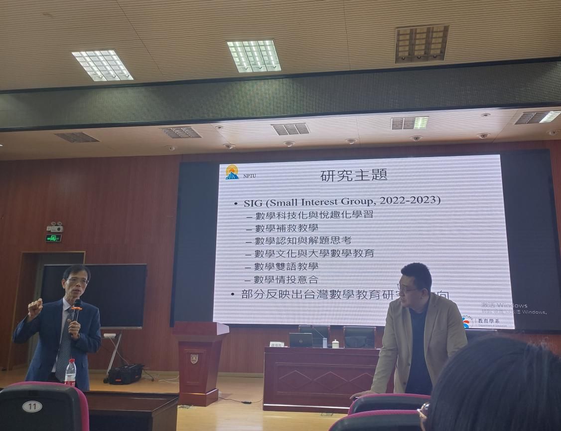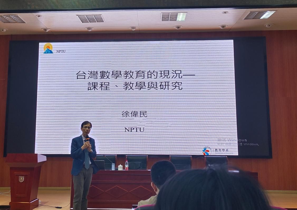 下午,徐伟民教授作了主题为“台湾数学教育的现况——课程、教学与研究”的讲座,。徐教授以近几十年台湾的四次课程改革为主线,讲述了不同时期台湾数学课程改革的基本特点,重点阐述了2014年至今逐步实施的“素养取向”转变。徐教授指出,课程改革的关键在于教室内的课程实施,但是从目前的现状来看,对课程实施有效性的检验不足,这是我们需要努力的地方。此外,徐教授还对台湾不同时期的师资培育做了介绍,几十年来,台湾的师资培育机构发生了转型,从师专到如今的教育大学,师资的培养方式更加多元,主张教师成为课堂与教学的研究者,鼓励创新和多元的教学方法。