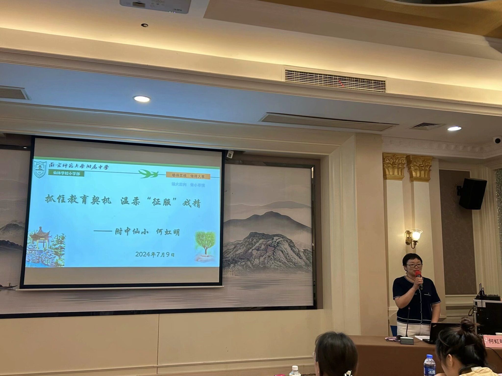 南京市德育工作带头人、南师附中仙林学校小学部优秀班主任何虹明老师以“抓住教育契机 温柔‘征服’戏精”为主题,分为五步向各位班主任分享了如何转化特殊学生的一线教育经验,并做出“生活处处皆素材 处处留心信手来”的倡议。