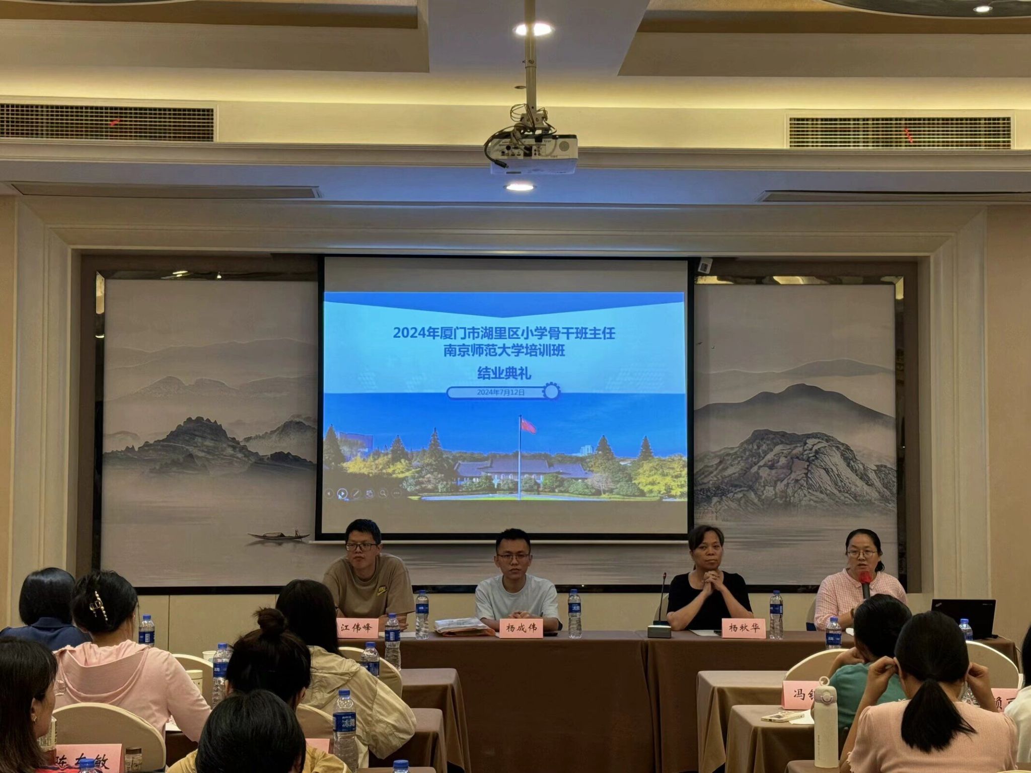 7月12日下午课程结束后,厦门市湖里区小学骨干班主任培训班举行结业典礼。结业典礼上,研修班班主任邵博学对本次培训进行了总体情况反馈,湖里区教师进修学校杨秋华老师进行了总结讲话,厦门市湖里第二实验小学杨成伟老师为所有参训班主任颁发结业证,厦门市湖里区教师进修学校附属小学江伟峰对主办方精心安排给予了充分肯定,希望各位班主任对本次培训内容继续学习深化。至此,本次厦门市湖里区小学骨干班主任培训班结束。