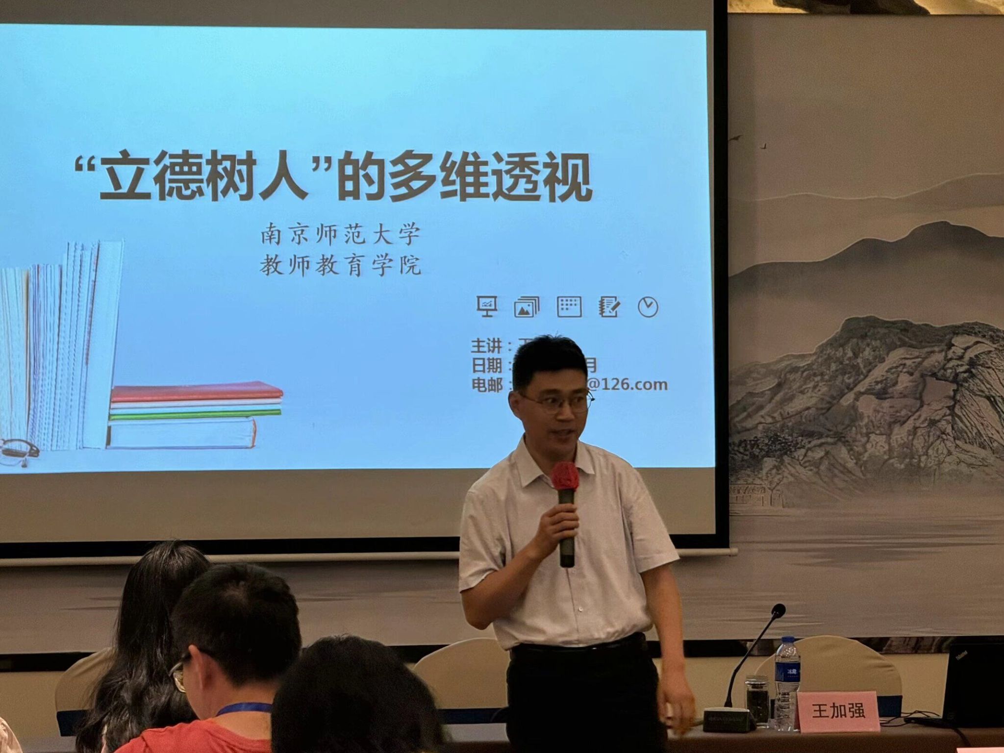 南京师范大学教师教育研究所副所长王加强教授以“立德树人的多维透视”为主题,从历史定位、逻辑建构、微观透视三个方面,围绕我国教育方针的演变、立德树人的理论框架、立德树人的发生机制,针对班主任工作源头——德育展开讲座分享。讲座深入浅出,让各位教师站在历史的洪流中感受中国教育史的发展,加深对班主任工作中“立德树人”理念的理解。
