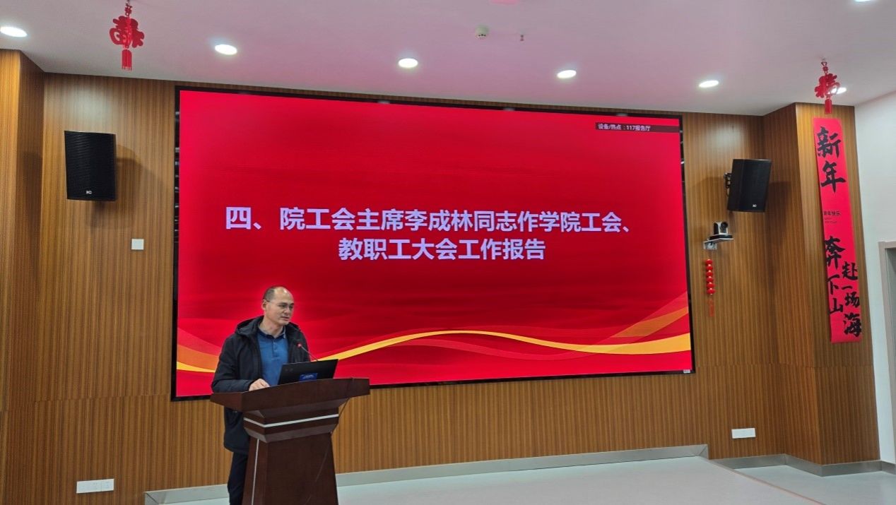 工会、教职工大会2024年工作报告》。李主席指出,2024年学院工会、教职工大会积极参与学校和学院管理工作,组织教职工开展丰富的业余文化活动,积极倡导健康的生活方式,同时做好教职工慰问服务活动,不断优化育人环境,提升教职工工作生活质量。2025年全体工会委员将在校工会和院党委院行政的领导下,团结协作,凝心聚力,全心为教职工服务,为学院各项工作的开展提供有力保障。