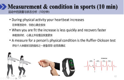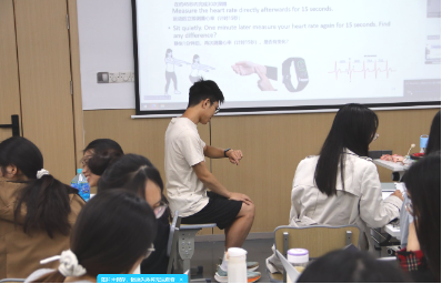在这一环节中,师生们积极参与,充分交流。正式测量前,同学们认识了多种类型的测量尺,体验了不同测量工具的特点,并围绕“教学中可以测量什么”“如何进行有效测量”等问题展开讨论。讲座现场还特别安排了实践活动:孙刘畅同学进行了测量心率的示范,各小组也根据测量步骤完成了实际测量与数据计算。通过亲身参与,同学们不仅深化了对“测量”的理解,也体会到数学、生物与体育之间的紧密联系。