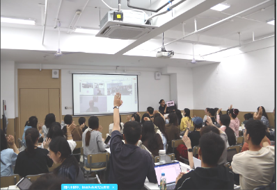 主办,学科教学(数学)班邀请学科教学(生物)班全体同学共同参与。讲座中,赵晓燕老师、郭舒晨老师全程翻译,确保了讲座内容的准确传达和互动交流的顺畅。两个专业的同学们跨学科组队,在多学科视角的碰撞中拓展了思维边界。