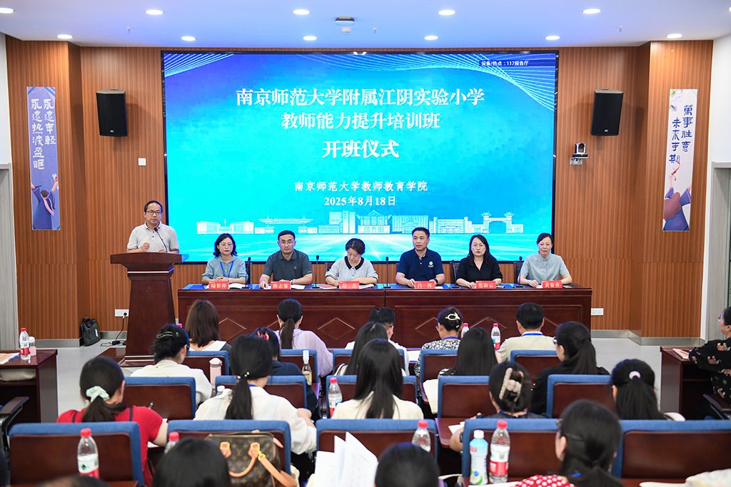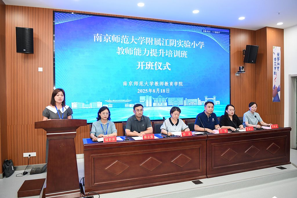2025年8月18日,南京师范大学附属江阴实验小学教师能力提升培训班开班仪式在南京举行。江阴市新桥镇副镇长赵苏、江阴市新桥镇社会事业办公室主任陈志强、南京师范大学附属江阴实验小学校长陆彩萍、南京师范大学基础教育合作处处长吕挥、博彩网址大全