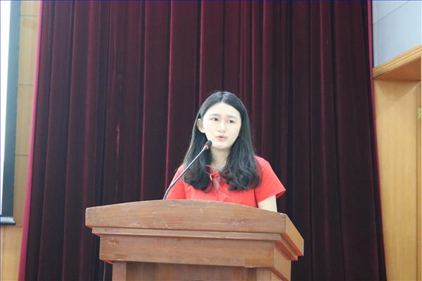 学生会主席徐雯恬同学作为老生代表,向新生们分享了两年来她与南师相遇、相知的故事。回顾两年时光,她与师院共成长,从小干事到学生会主席,也获得了校优秀团干部、校优秀团员、校三好学生以及优秀班干部的荣誉。作为有着丰富经历和学识的学姐,她告诫新生,要学会规划人生,学会充实生活,学会独立思考,在师院重新起航。“盛年不重来,一日难再晨”,她勉励大家珍惜大学四年的时光,在新的征程里不断拼搏向上。
