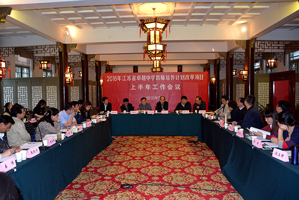 5月21日下午,2016年江苏省卓越中学教师培养计划改革项目上半年工作会议在我校随园校区召开。省教育厅师资处许李军副调研员出席,苏州大学、江苏师范大学、盐城师范学院、常熟理工学院、淮阴师范学院及我校等六所国家级、省级卓越中学教师培养计划改革项目学校的教务处处长、项目负责人和项目指导专家参加会议。