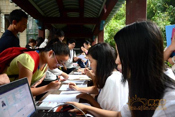 学生会的组织下尽心尽力地为新生服务。迎新工作有条不紊,有效率的进行着。