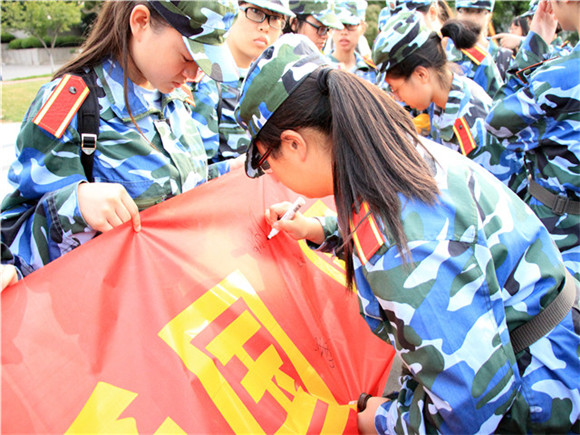 仪式结束后,同学们纷纷在“铭记历史,奋发图强,励志爱国,圆梦中华”的横幅上签下自己的名字,表达了不曾忘却国家民族的屈辱史,励志做爱国主义的建设者、传播者、发扬者,强化责任担当,用青春践行“中国梦”。