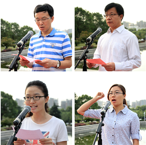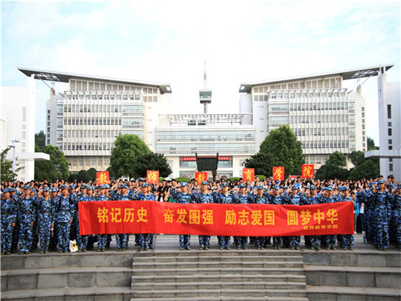 党委书记张杰发表国旗下的讲话。他与同学们一起回顾了70年前,中国人民在中国共产党领导下进行的艰苦卓绝的抗战历程,告诫同学们要正视历史,勿忘国耻。他对全体同学提出了三点希望,一是正史观。耻辱不可磨灭,历史亟需铭记,当前一些历史虚无主义抹黑伟大的抗战精神,否定中国共产党在抗日战争中的中流砥柱。对此,作为当代大学生要掌握历史唯物主义的世界观和方法论,对一切企图否定和美化法西斯主义罪恶侵略历史,企图挑战与颠覆二战后国际秩序,企图污蔑和攻击人类反法西斯胜利成果,企图漠视或泯灭中国人民抗战牺牲与贡献的妄图实现此类的历史修正主义、历史翻案之风说,我们全体中华民族,绝不允许,我们大学生,坚决反对。二是强学识。教师是知识的传播者、文明的传承者。作为一名师范生,要牢记习近平总书记提出的“有理想信念、有道德情操、有扎实学识、有仁爱之心”的“四有”要求,勤奋学习,刻苦钻研,提高专业素质,“学为教育家”。要以“正德厚生 笃学敏行”的校训严格要求自己,养德、储能、创新,不断向“卓越教师”的目标迈进。三是怀天下。“天下兴亡,匹夫有责”,教师是人类灵魂的工程师,教师的职业理想与祖国的命运紧密相连、休戚相关。作为一名师范生,要弘扬先烈的爱国主义精神,担当“立德树人”的历史使命,秉承“严谨朴实,奋发奉献”校风,牢记“学为人师,行为世范”信条,成长为一名“未来教育家”,为实现中华民族伟大复兴的中国梦奉献青春的智慧!