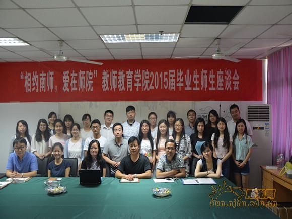 2015届本科毕业生座谈会在仙林校区化成楼222会议室召开。教师院党委副书记江胜尧、副院长周晓静以及教师院辅导员、班主任、教务员与2015届10个专业本科毕业生代表齐聚一堂,围绕学院人才培养、教学工作以及学生管理等方面展开讨论。