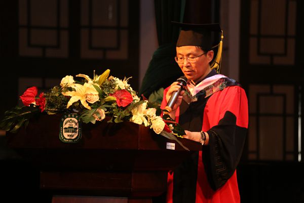 院长杨作东老师向全体毕业生做了真挚、感人而满怀期望的致辞。他总结了全体毕业生在校期间取得的荣誉、成绩和贡献,深情回忆了毕业生们与教师院共同成长的时光。同时以师长的身份同全体毕业生分享了三句话:一:立志“古之成大事者,不惟有超世之才,亦必有坚韧不拔之志。”二:求真。“千教万教教人求真,千学万学学做真人。三:向善。“上善若水,水利万物而不争。最后,杨院长对即将远行的毕业学子们送上了真诚的祝愿。