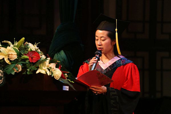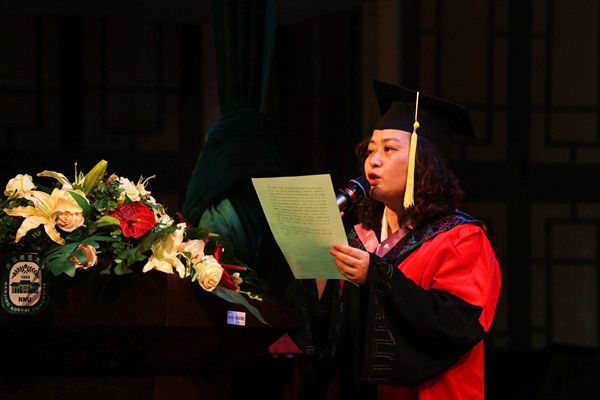党委书记张杰老师宣读了表彰优秀毕业研究生和优秀研究生干部的决定,由马复教授宣读了授予学位的决定。伴着激昂的音乐,身着蓝色硕士学位服的各位毕业生依次上台,与会领导、教授依次为获奖同学颁发奖状、热情握手。又为全体获得学位的毕业硕士生扶正流苏,浓情寄予祝贺,并与同学们合影留念。在座全体师生报以热烈掌声,这既是对毕业学子的祝贺,更是对未来的深情祝福。