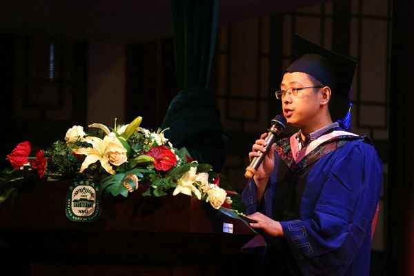 汪涛老师向在场全体师生介绍了出席本次典礼、仪式的领导来宾,宣布典礼开始。国歌声中,古典而浪漫的随园音乐厅显得分外庄严,毕业典礼正式拉开了帷幕。