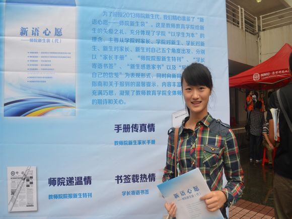 世纪广场铜鼎旁,有高举旗帜的师院志愿者迎接着刚下车的学弟学妹;新生报到点到新生的宿舍楼间,可亲的志愿者在帮助新生提拿行李;美丽的南师大门前,恢弘的世纪广场上,有可爱的志愿者协助新生与家长合影留念的欢乐瞬间……一张张挂满微笑的脸,一句句亲切热烈的交谈,交织出博彩网址大全