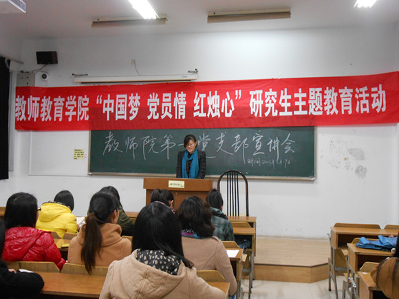 本次宣讲活动由党支部书记刘婷主持,12级三年制第一党支部的全体同学都积极地参加了此次活动。晚上,虽然下着淅淅沥沥的雨,但是支部同学参加活动的热情并没有丝毫的消减,男同学更是冒雨从南区走到北区参加支部活动。此次宣讲活动由10名同学进行宣讲。宋青、崔煜、张欣、朱虹晔、刘飞燕、王蒙、姚亚楠、薛瑞勤、鹿璐、蒋文意十名同学在此活动中围绕党的十八大和两会的内容,并结合自身对教育专业的学习和研究,引经据典,表达了自己的党员胸怀和教育情怀。其中,蒋文意同学以自身实习经历为内容,将自己的实习经历以日记的形式与大家分享,她的宣讲真实感人,表达出她对教育的一腔热忱与真诚之心,展现了她对孩子们的关心与爱护,对教育事业的理想与热爱。另外,宋青同学以身边优秀教师为典范,表达了她对教育是“一份责任,一份期待”的理解。朱虹晔等同学都给我们带来了精彩的宣讲,她们都将自己对教育的感悟和理解与大家分享,感染着在场的每一位同学。