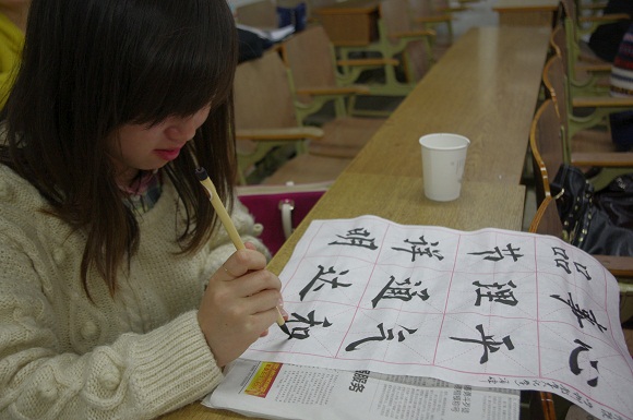 本次三笔字比赛共包括钢笔字、毛笔字和粉笔字三部分,分两场举行。赛前,同学们报名踊跃,并都勤加练习,丰富课余生活的同时提升了个人修养,进一步加强了教学技能。第一场比赛主要内容是毛笔字和钢笔字,于4月12日晚7:00在学正楼206举行。比赛当天,现场气氛热烈,大家热情高涨。毛笔字的比赛内容为“品节详明、事理通达、心平气和”12个字,钢笔字的比赛内容为李白的《将进酒》。在主持人简短的开场之后,比赛正式开始。按照比赛规则,参赛的各位同学将规定书写的内容以各自的风度格调一一呈现跃然纸上,但见落笔沙沙,给每一位鉴赏者带来了美的享受。第二场粉笔字比赛于4月18日晚7:00在学正楼209举行。当晚比赛内容为著名古诗《春晓》,现场参赛的同学十分认真,大家都努力发挥出了自己最好的水平。