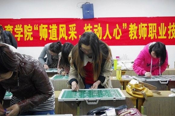 对学生职业技能的训练、提升和考核形成体系,从而切实提高了同学们以后为人师表的基本职业技能。通过本次比赛,同学们获得了一个锻炼自我、展示自我的平台,在培养职业能力和素养、满足教师专业发展需求的漫漫征程上,做出了十分重要的努力,相信结合接下来即将开展的一系列包括PPT设计、教案展示、现场说课等等赛程,大家在基本的课堂掌控能力上必将更上一层楼。(教师院/唐莹莹)