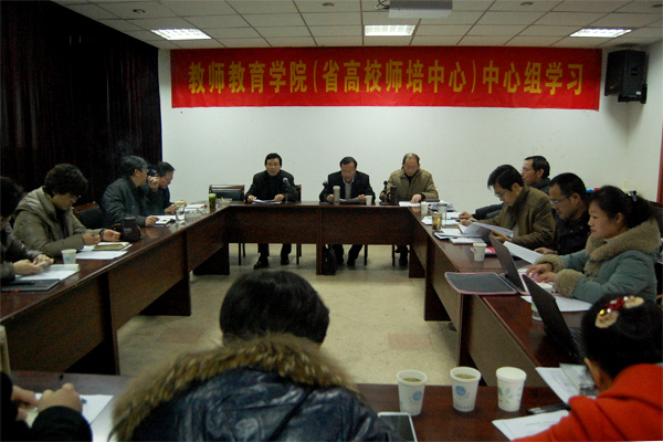 党委书记张杰主持了中心组学习活动,阐明了本次学习的主要内容及其重要意义。常务副院长郭宁生首先分析了“十二五”以来教师教育领域改革发展的新形势和新问题,以及学院(中心)“十二五”事业发展计划目标任务的落实情况,提出了2013年度学院(中心)三项重点工作:以“未来教育家”培养工程为抓手,以部省共建教师教育领域为平台,努力建设国内领先的高水平的具有示范和引领作用的教师教育基地,重点开展两方面工作:一是深化教师教育体制和运行机制建设,二是深化教师教育改革的内涵建设;积极探索教师职后成长规律,多渠道、多模式开展教师职后培训,形成职前职后互动的良性机制,建设省内领先、国内一流的教师培训基地;进一步积聚教师教育学科建设力量,完善引导和激励机制,着力打造学科建设和科研的优秀团队,认真建设教师教育核心研究基地,促进教师教育学科建设与发展。