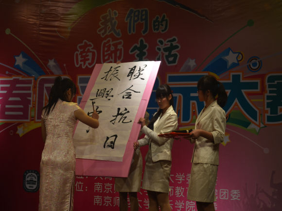 “青春我做主”才艺展示环节中,选手通过与社团结对,参与社团活动,锻炼多方面才艺,折射出百年南师悠久历史、人文精神与时代特征。细品《幸福的味道》,浅尝《菊花台》的忧伤;体验《舞型我秀》的优美与《一寸山河一寸血》的感人;在唱念做打、笔墨纸砚中展现南师学子的风采。深厚的古典文化修养与现代化国际视野相碰撞,古典美与现代风交织成一曲和谐而震撼人心的乐章。