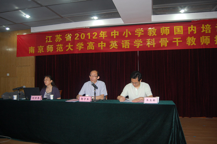 基础教育师资培训中心副主任王立新、本培训项目负责人刘学惠教授、班主任赵家荣老师和参加培训的来自苏州和南通地区的一百多名高中英语学科骨干教师,典礼由王立新副主任主持。
