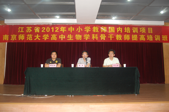 副院长、南京师范大学基础教育师资培训中心副主任王立新、本次培训项目负责人解凯彬副教授和参加培训的来自苏州和南通地区的一百多名高中生物学科骨干教师。