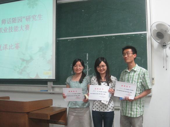 比赛的最后,大赛组织方根据之前的初赛的成绩,最终分别评出说课单项奖、简历设计单项奖和整个总评大奖各三名。其中数科院的钟昱同学表现尤为出色,给评委老师留下了深刻印象,荣获总评大奖第一名以及说课比赛第二名。而说课比赛及简历设计奖头名则分别为教师院孙娜和孙礼欣同学。整个比赛氛围融洽,选手们纷纷表示收获颇丰。(教师院研会/供稿)