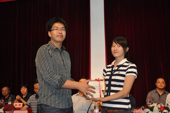 学生会轮值主席周翌可和2011级英语师范专业本科生陆佳静分别代表学长和新生发言。周翌可同学作为学长代表将去年的师长赠书转赠给了2011级新生,同时也将这份祝福和期待传递了下去。随后,陆佳静同学带领2011级全体新生庄严宣誓,为即将开始的大学生活立下誓言。