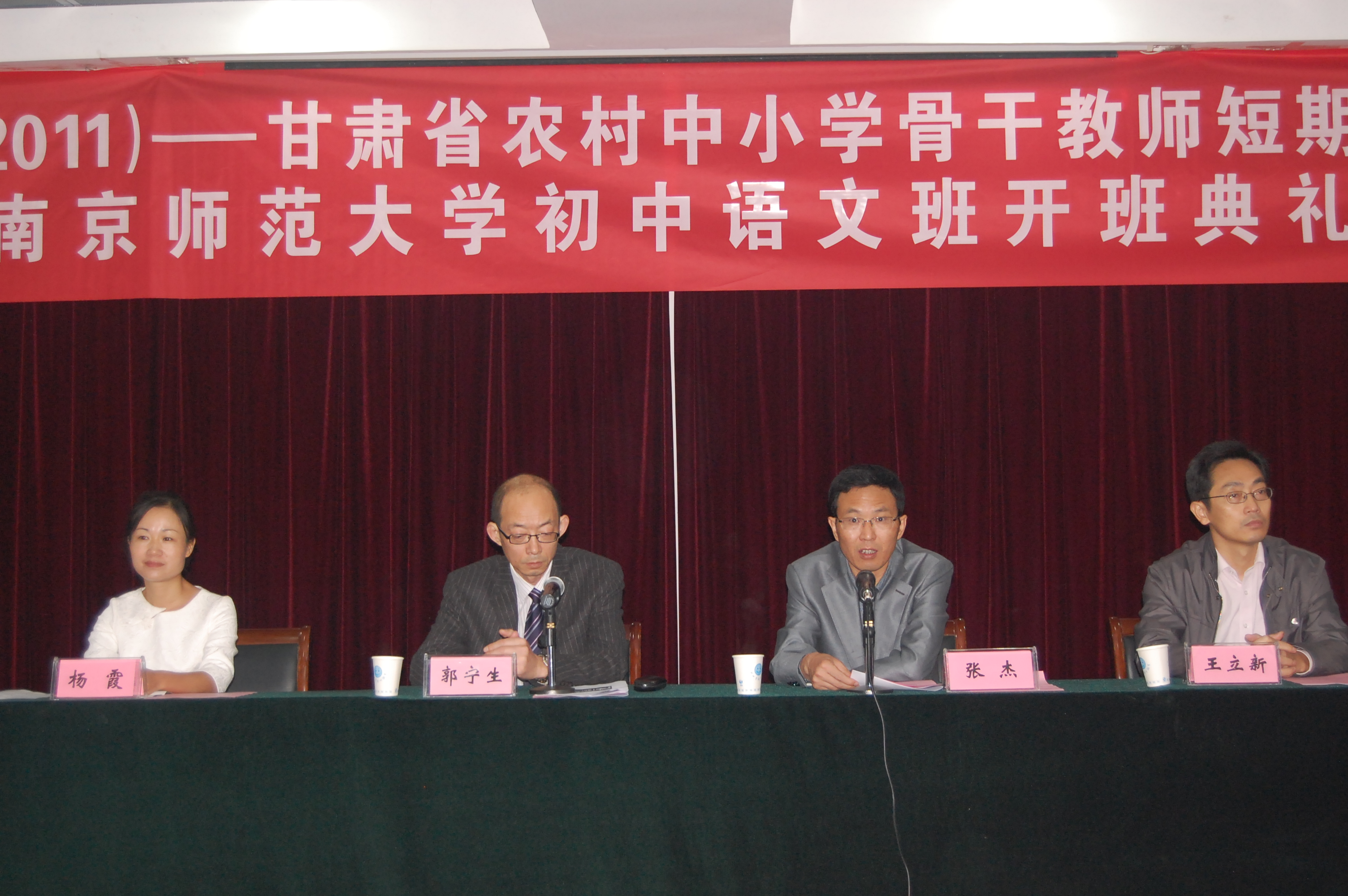 10月9日上午,教育部、财政部“国培计划(2011)”—甘肃省农村中小学骨干教师培训项目南京师范大学初中语文教师短期集中培训开班典礼在南京师范大学逸夫楼报告厅召开。