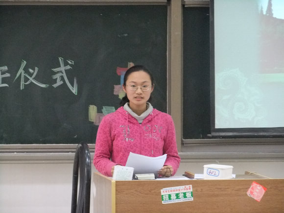学院2010级生物师范班学业导师解凯彬老师,2011学年国家奖学金、费孝通奖学金获得者龚琳同学,分别代表受聘导师和学生代表发言。解凯彬老师用热情洋溢的发言,表达了对同学们的殷切希望。解老师表示,他愿成为同学们的良师益友,用执教经验与一腔热情,与同学们共同成长,为实现人民教育家的目标而努力。解老师亲切的语气,幽默的言语,深深感染了在场的每一个同学。学生代表龚琳在发言时表示,作为立志成为未来人民教育家的师院学子,要努力做到自主学习,在实践中学习,在交流中学习。我们不仅仅需要学习课本上的知识,更重要的是学习严谨踏实的治学态度、精益求精的创新精神以及不断进取的实践能力。相信在各位学业导师的指引和帮助下,师院学子的大学成长之路一定会走的更加自信,更加踏实。