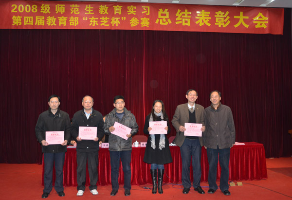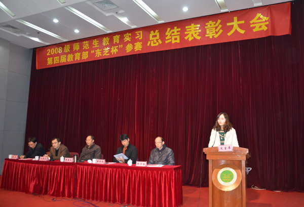 12月12日下午,我校2008级师范生教育实习暨教育部第四届“东芝杯”中国师范大学理科师范生教学技能创新大赛总结表彰大会在仙林校区敬文图书馆东报告厅隆重召开。校党委常委、副校长傅康生教授出席大会,校教育实习领导小组成员、实习带队教师、优秀实习小组和实习生、教育部第四届师范生教学技能创新大赛南师大赛区获奖选手及指导教师参加了本次大会,部分09级师范生旁听了大会。