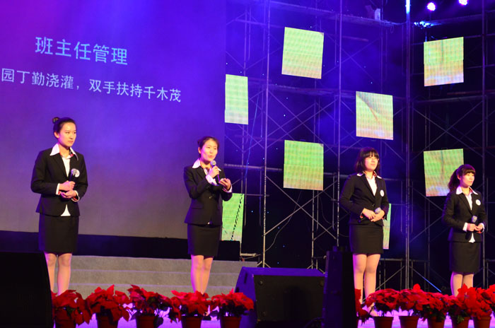 下午2点,校十佳班级总决赛正式拉开序幕,时间在一幕幕精彩的成果展示中飞快流逝。作为第11个展示班级,英语师范班的展示在院教师技能系系主任杨霞老师的发言中拉开序幕,杨老师以一封信的形式表达了她对同学们的祝贺和期望。在助威团响亮的口号中,张立、刘颖、王亚男、韩雅雯四位同学走上舞台,从班风建设、学风建设、制度建设、班级活动、班主任管理、网络建设等六大板块,以“十年树木,百年树人”的理念,将班级一年来所取得的成果一一呈现。完美的展示了博彩网址大全