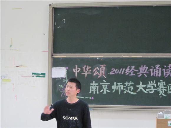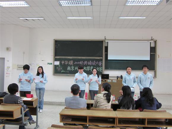承办的中华诵•2011经典诵读大赛南京师范大学赛区决赛在仙林校区学正楼201教室拉开序幕,担任本次比赛的评委有:文学院播音与主持专业副教授、国家级普通话测试员朱洁老师,文学院播音与主持专业教师、国家级普通话测试员黄灿老师、博彩网址大全