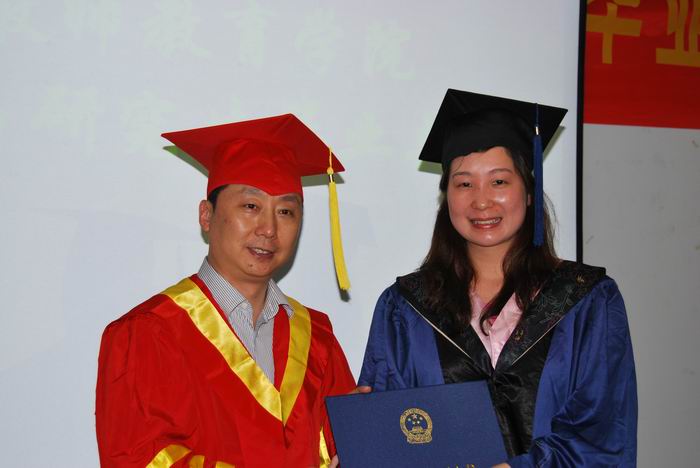 2011届优秀毕业研究生的决定》。在激昂的颁奖乐曲中,身着硕士学位服的毕业生们怀着无比自豪和激动的心情依次上台,从夏校长手中接过了毕业证书和学位证书,完成了硕士学位授予仪式。