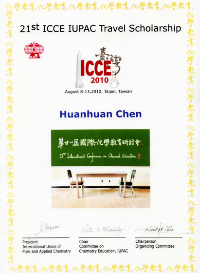 8月8-14日,在国际纯粹应用与化学协会(International Union of Pure and Applied Chemistry,简称IUPAC)在中国台湾省台北市举行的第21届国际化学教育大会(The 21st international conference of chemistry education,简称21ICCE)上,我校博彩网址大全