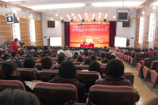 夏校长用丰富详实的历史资料带领学子们一起回顾了新中国成立以来我国基础教育发展的基本历程,从建国初期的旧教育改造、新学制颁布,到模仿、照搬苏联教育模式,再到自力更生、艰苦奋斗,寻求符合中国国情的教育模式,明确提出“教育为无产阶级政治服务”和“教育与生产劳动相结合”的教育方针;历经十年“文革”浩劫、受到重创的我国基础教育终于在十一届三中全会之后走进改革开放的春天,焕发出勃勃生机。夏校长还向同学们介绍了我国基础教育改革与发展的重大议题,如教育发展战略地位的确立、教育行政体制与学校管理制度改革、义务教育普及化、基础教育新课程改革等;并对我国未来十年的教育发展总体规划、具体规划以及基础教育发展的改革重点等做了全面、详实的前景展望,使同学们清晰地认识到“科教兴国”、“人才强国”战略是我国教育发展指导思想,了解了“优先发展、育人为本、改革创新、促进公平、提高质量”的我国教育发展工作方针以及战略目标、主题等;更加深刻地理解自己所学专业以及将要从事的基础教育的历史、现在与未来;更加感性地意识到高师院校师范学子们面临的机遇和挑战,从而更加理性地思考大学四年的目标与责任。