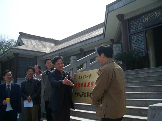 今天我们怀着对陶行知先生无比崇敬的心情,在晓庄行知园陶行知纪念馆举行“南京师范大学教师专业发展教育与研究基地”揭牌仪式。