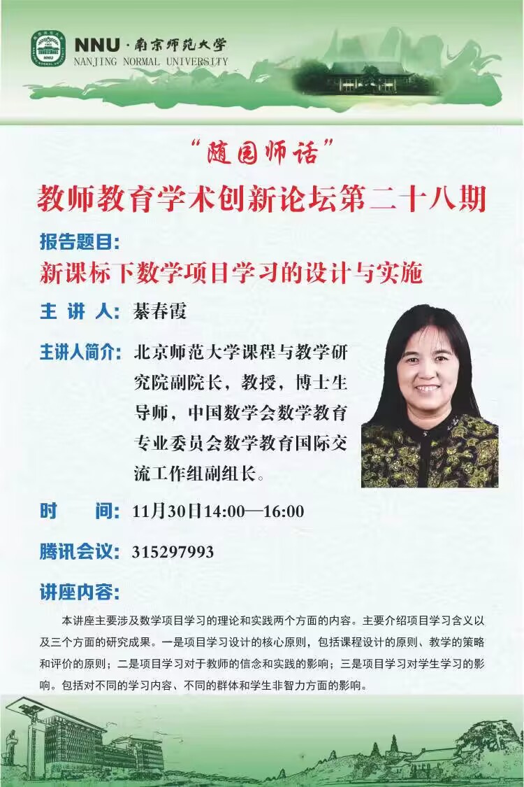 学术预告:“随园师话”教师教育学术创新系列论坛(第二十八期)