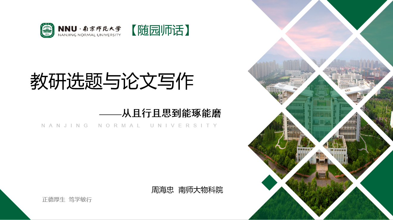 2023年3月8日下午15:30-17:30,南京师范大学物理科学与技术学院原党委书记、硕士生导师,南京大学信息管理学院出版专业硕士兼职导师,南京物理学会理事长,《物理之友》副主编周海忠教授为同学们带来了题为《教研选题与论文写作——从且行且思到能琢能磨》的专题讲座。