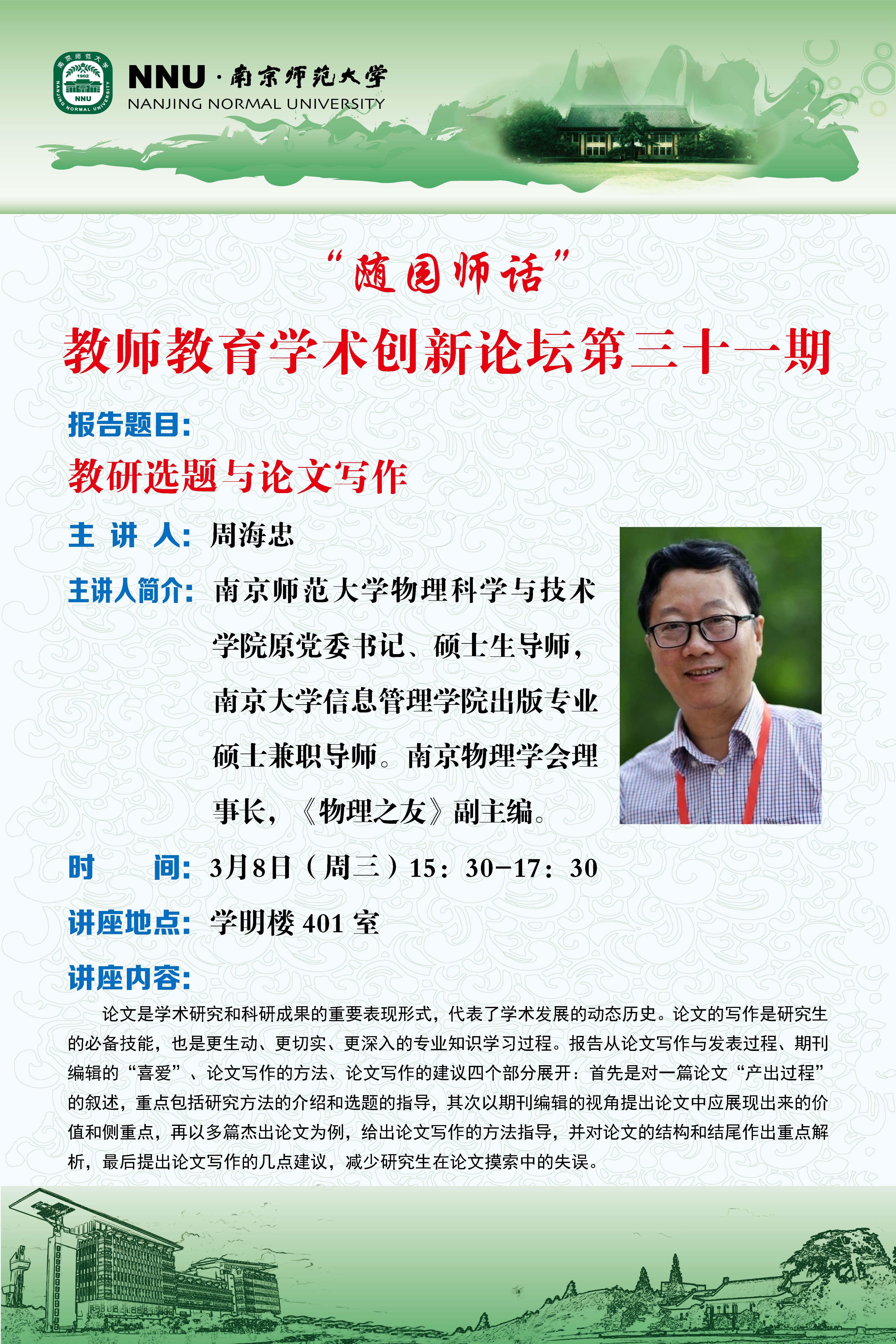学术预告:“随园师话”教师教育学术创新系列论坛(第三十一期)