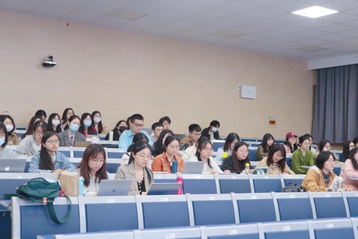 潘教授对群文阅读教学理念的详细阐释让同学们对群文阅读有了理论上的认知,同时潘教授还分享了许多详实而生动的教学实践案例,如《桃花源记》《出塞》课文教学,《月是故乡明——现代乡愁诗群文阅读》等。其中,《大美兰亭》群文阅读课的教学内容分享令在场同学惊叹不已,更让同学们深刻认识到创新性的阅读教学模式与教学方法能够激活语文课堂内在的生命力,丰富学生的阅读经验与审美体验,从而实现让学生热爱阅读、热爱思考、热爱表达的终极目标。