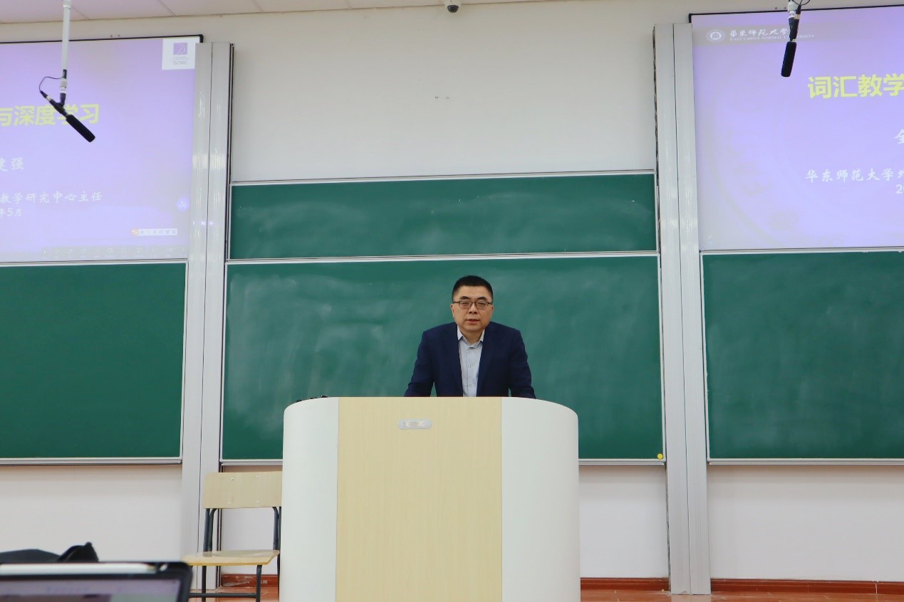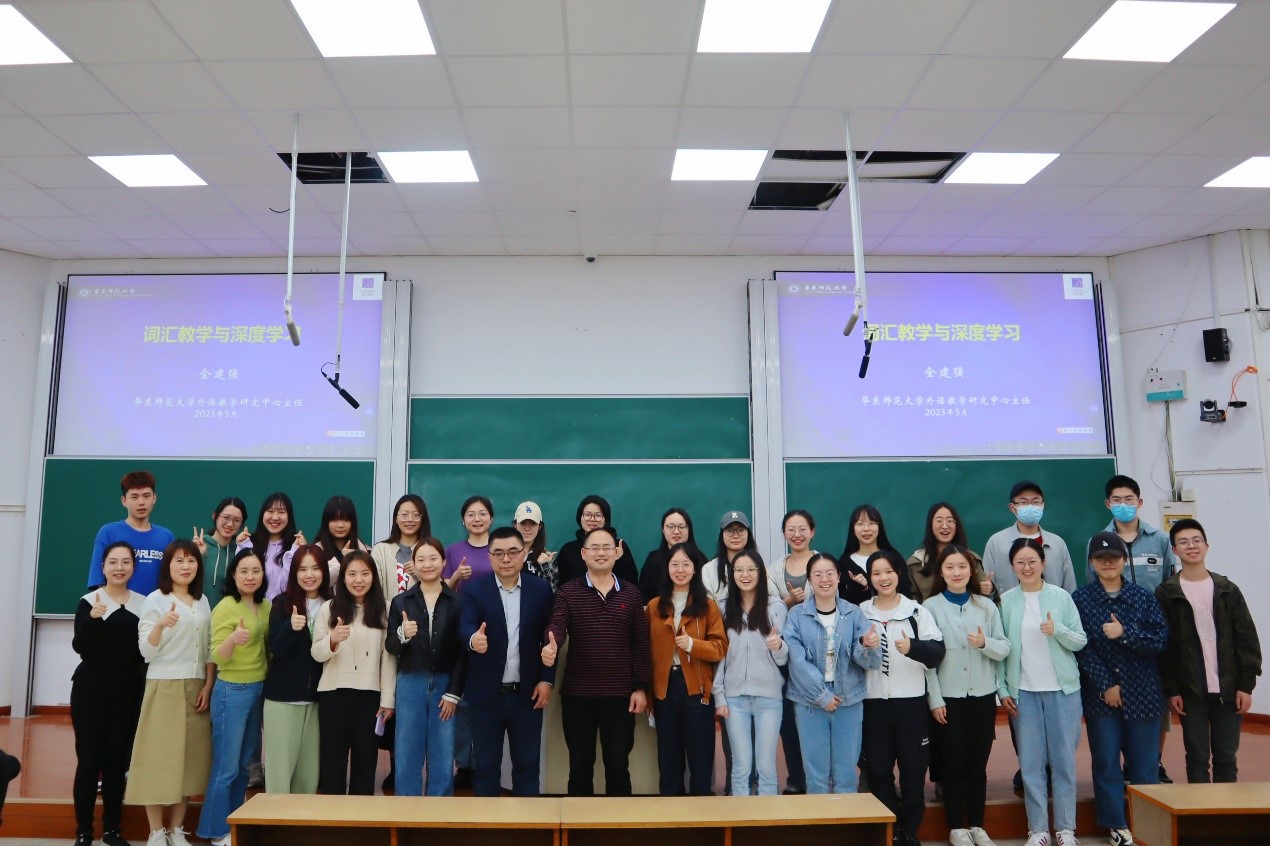 2023年5月24日下午,华东师范大学外语学院外语教学研究中心主任全建强教授为英语学科教学专业研究生带来《词汇教学与深度阅读》的专题讲座。全教授系《上海英语教研》编委会主任,长期从事英语教育研究、英语课堂教学实践研究、英语语法研究,对词汇和阅读教学有着自己独特而又深刻的见解。