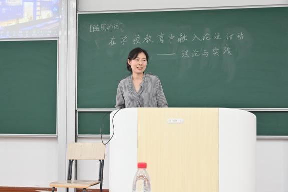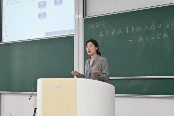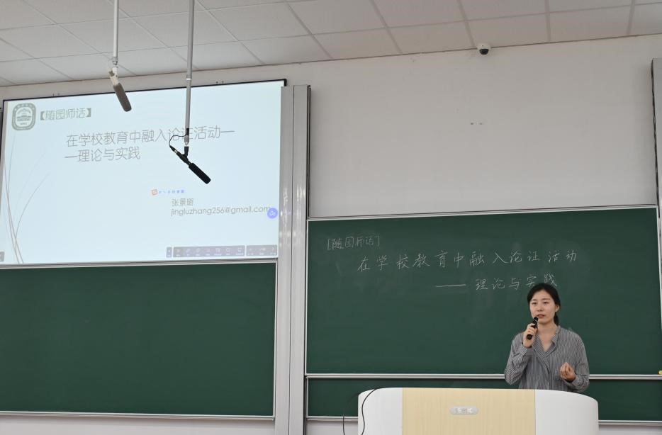 张景璐老师为同学们带来《在学校教育中融入论证活动——理论和实践》专题讲座。张老师曾在欧洲科学教育学会年会、欧洲教育学会年会、澳洲科学教育学会年会等多个国际会议和UCL、布里斯托大学等高校作学术报告。曾在SSCI一区期刊、CSSCI期刊发表论文。现任Journal of Research in Science Teaching审稿人。论证活动对于学生在科学及其他学科学习上的积极影响在国际范围内有广泛讨论。但在学校教育中落实论证能力的培养还需要教育工作者对其内涵、价值、教、学、评等方面有深刻的理解。本次讲座重点围绕这些话题从现有的理论和实践进行介绍;同时,将从论证与其他核心能力、论证与科学研究(测评)、论证与论文写作与发表等方面展开探讨。本次讲座由陆建隆教授主持,吴伟教授、22级物理学科教育硕士、23级物理学科教育硕士、本科生等近百名师生参与本次讲座。