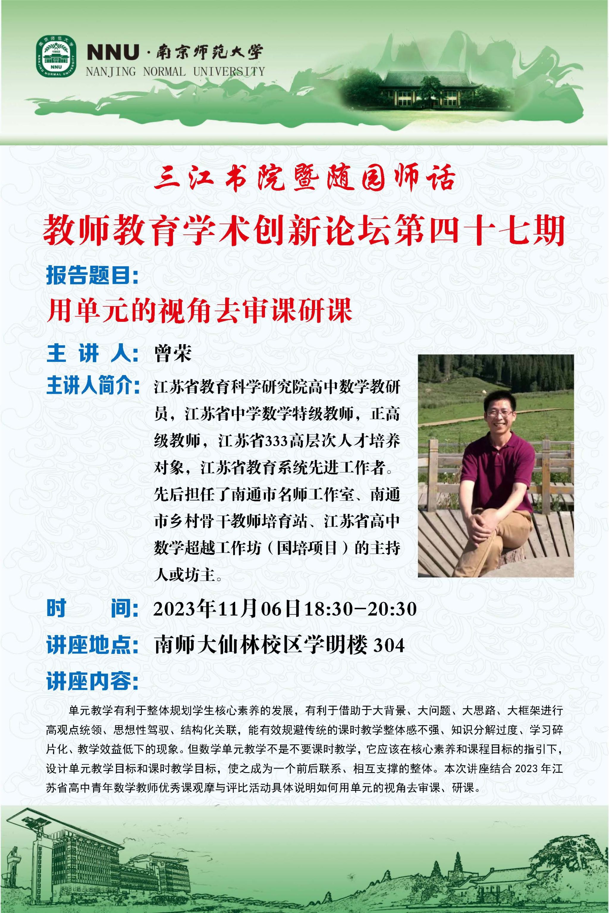 学术预告:“随园师话”教师教育学术创新系列论坛(第四十七期)