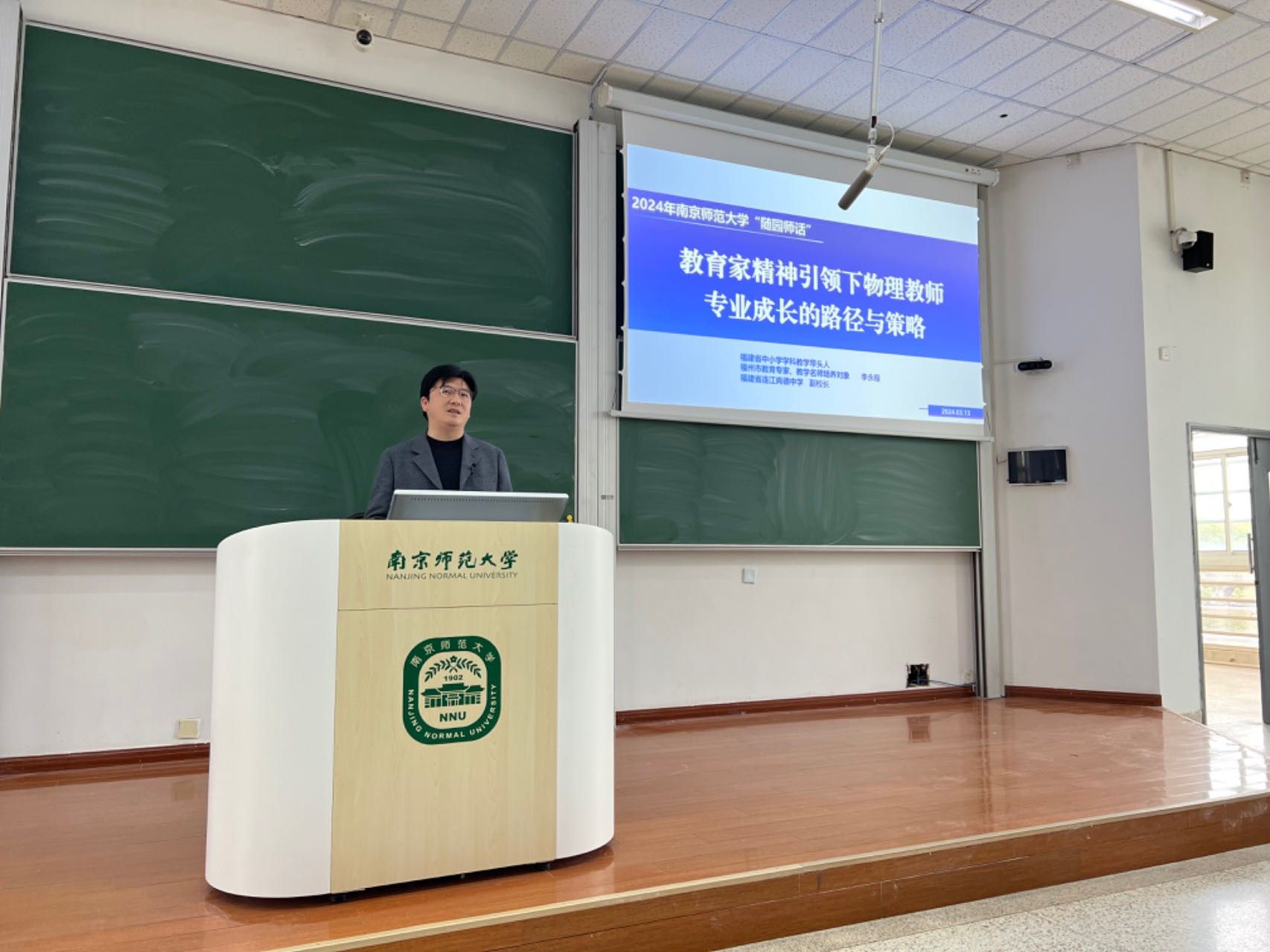 在学明楼402组织了第五十二期 “随园师话”教师教育学术创新论坛活动。论坛邀请了福建连江尚德中学李永程副校长做“教育家精神引领下物理教师专业成长的路径与策略”的主题讲座。22和23级学科物理教育硕士研究生、学科物理教育硕士研究生导师、20和21级物理+技术复合专业学生以及部分本科物理师范生共120余人参加了本次活动。报告由学科物理教育硕士专业学位点负责人陆建隆教授主持。