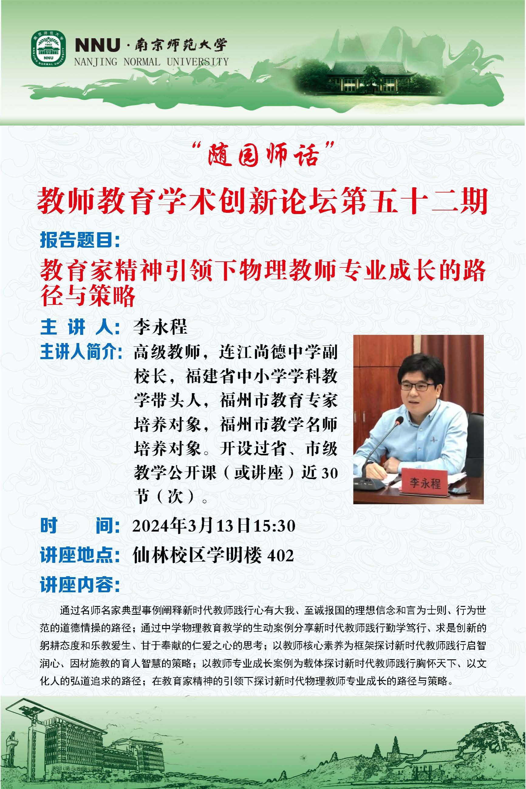学术预告:“随园师话”教师教育学术创新系列论坛(第五十二期)