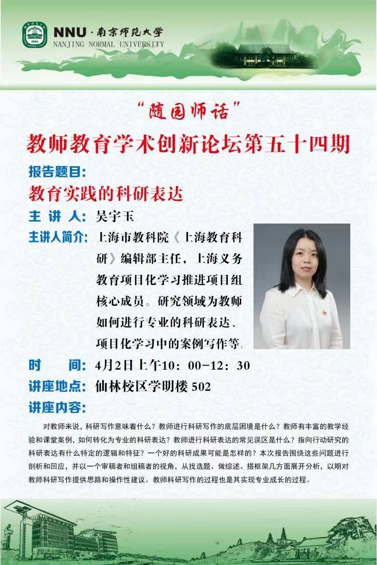 学术预告:“随园师话”教师教育学术创新系列论坛(第五十四期)