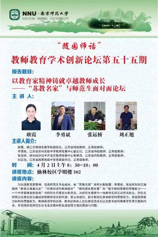 学术预告:“随园师话”教师教育学术创新系列论坛(第五十五期)