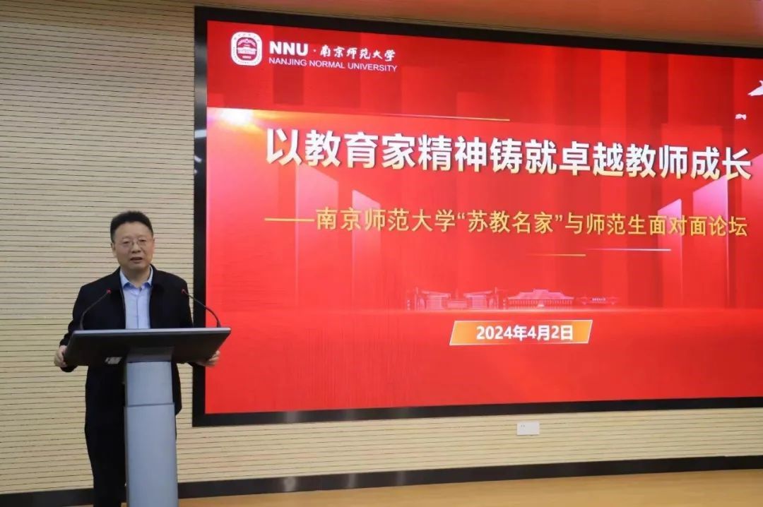 张连红在致辞中对“苏教名家”的到来表示了热烈欢迎,同时列数了南京师范大学在120多年校史中的知名教育家,指出他们笔耕不辍、培育后学的“厚生”精神是南师人宝贵的精神财富,希望同学们进一步弘扬教育家精神,珍惜与“苏教名家”面对面交流的机会,卓厉奋发,砥砺前行,努力成长为新时代的“四有”好老师,为教育强国和中华民族伟大复兴贡献力量。
